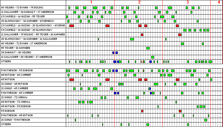 | 2 Zub - 72 Chabot | 0:52 | 0:06 | 0:11 | 0:06 | 0:29 | 0:11 | 1:15 | 0:08 | 0:29 | 0:27 | 0:02 | 0:16 | 0:16 | |||