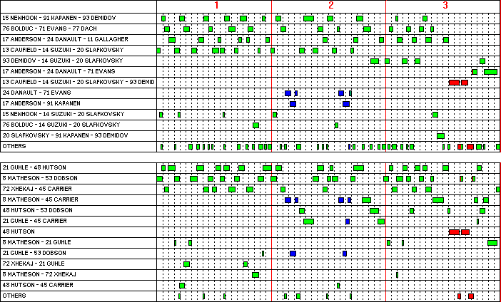 | 89 Robertson - 29 Groulx - 53 Cowan | 2:09 | 0:42 | 1:00 | 0:58 | 2:07 | 0:07 | |||||||||||